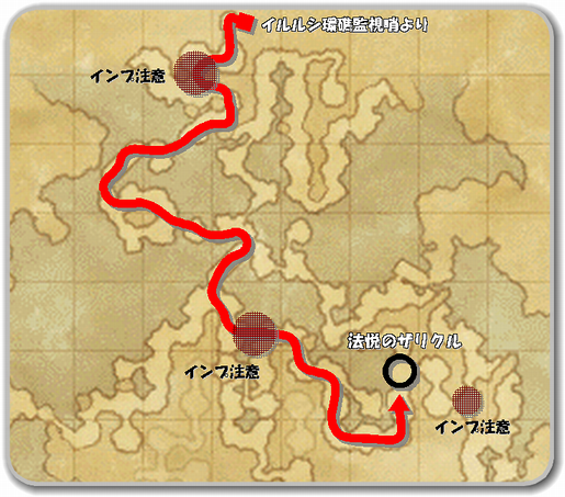 途中、インプがうろついている場所があるので図に示しておきました。通る時は注意。