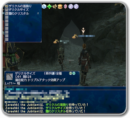 トリガーアイテムの「ザリクルの首飾り」を100%と、↑の鎌をドロップ。