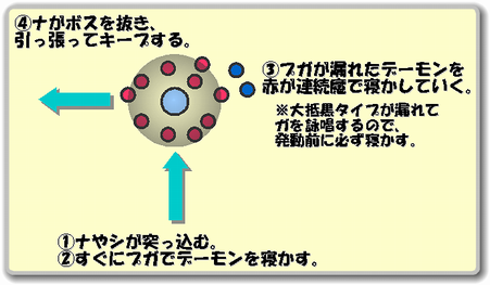 ・漏れたデーモンをすぐに寝かせる様に赤や詩も最初から待機しておく。