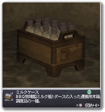 3種類のキャップをル・ルデの庭(H-9)にいる子ミスラにトレードすると「ミルクケース」を獲得。