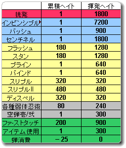 このサイトを参考に主にナ・赤盾で使うアビ・魔法のヘイトを表にまとめると…