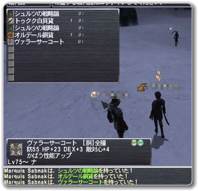 貨幣はオルデが87枚、貝が78枚、バインが62枚の計227枚 + 100バインが1枚というドロップでした。