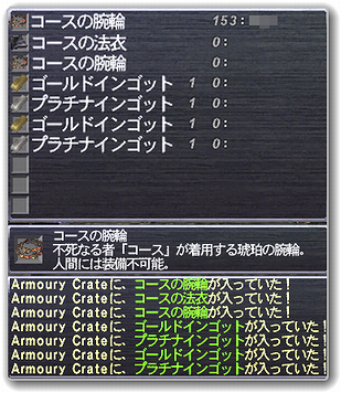 という事で、↑の戦利品と1440アンプルを貰って終了。
