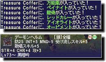 回復箱から経験値1500、そして時間箱(青箱)からデーモンヘルムのオーグメント品がドロップ。